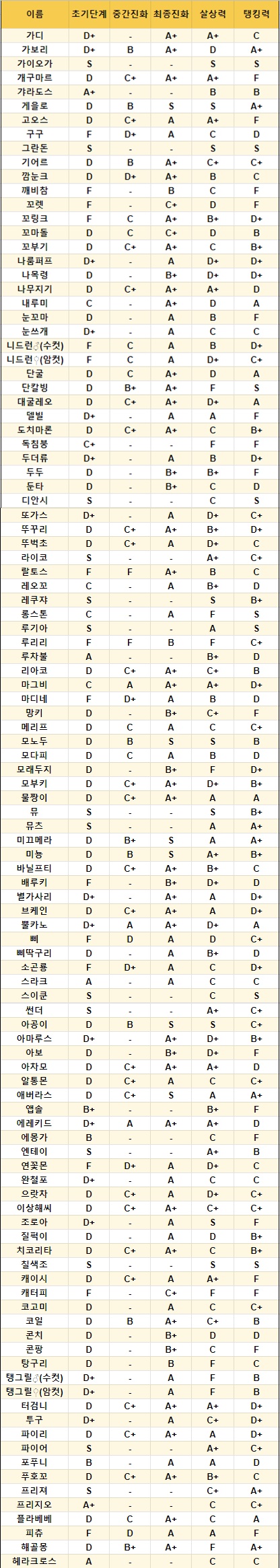 | 이상해씨 | D | C+ | A+ | C+ | C+ |