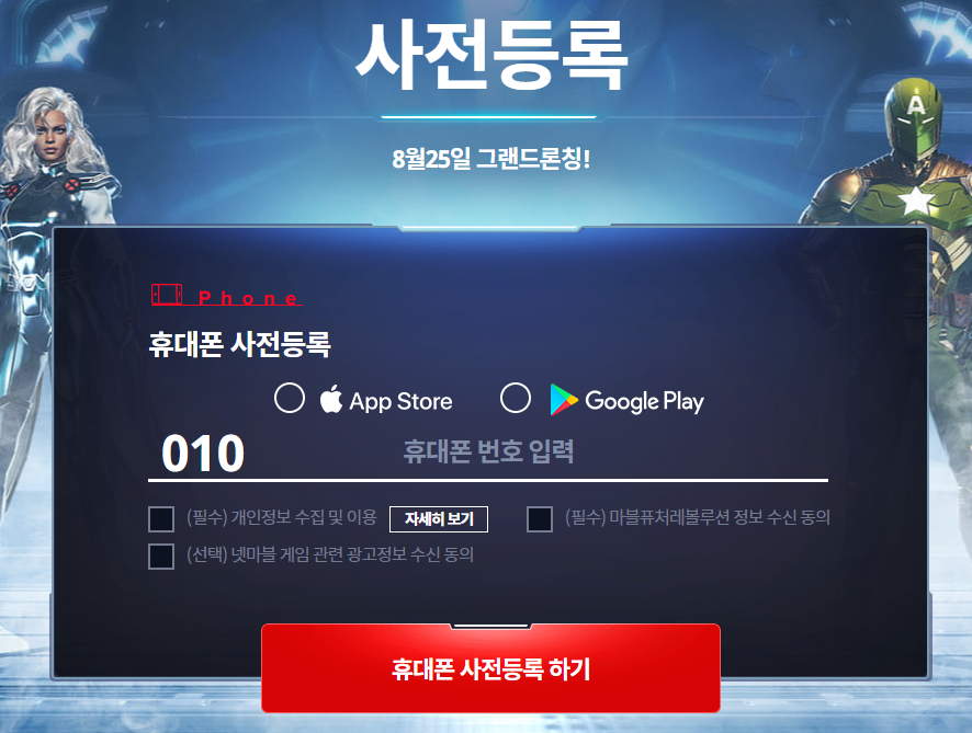 안녕하세요 미하입니다. 마블 최초 모바일MMORPG인 마블 퓨처 레볼루션이 이번 8월25일 정식 오픈을 한다고 합니다. 현재 사전예약을 진행중이며 어떤식으로 출시할지 궁금해 지네요 그러면 사전예약 보상과 어떤식으로 만들어졌는지 살펴보도록 하겠습니다.